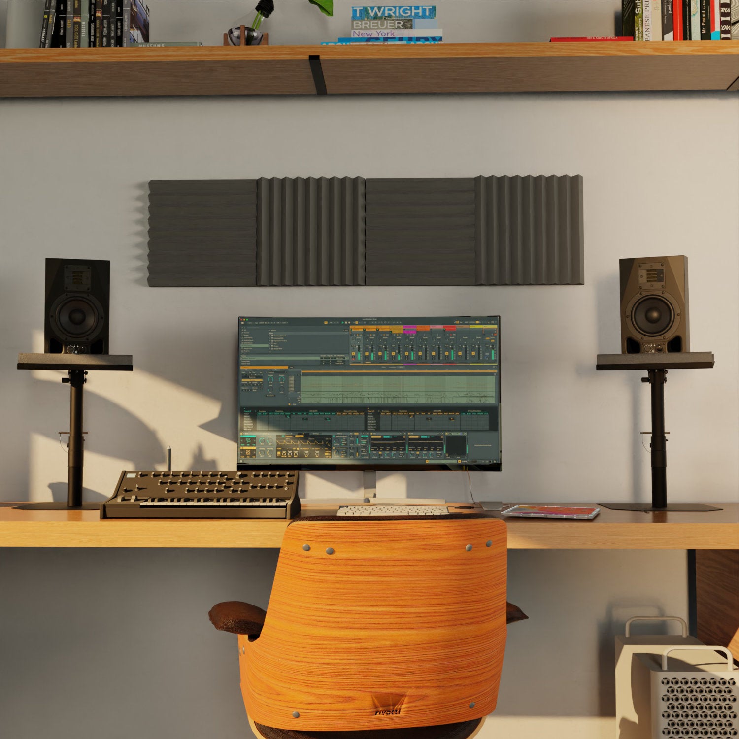Stabiler Schreibtisch-Lautsprecher Ständer Set inkl. Schaumstoff Absorber