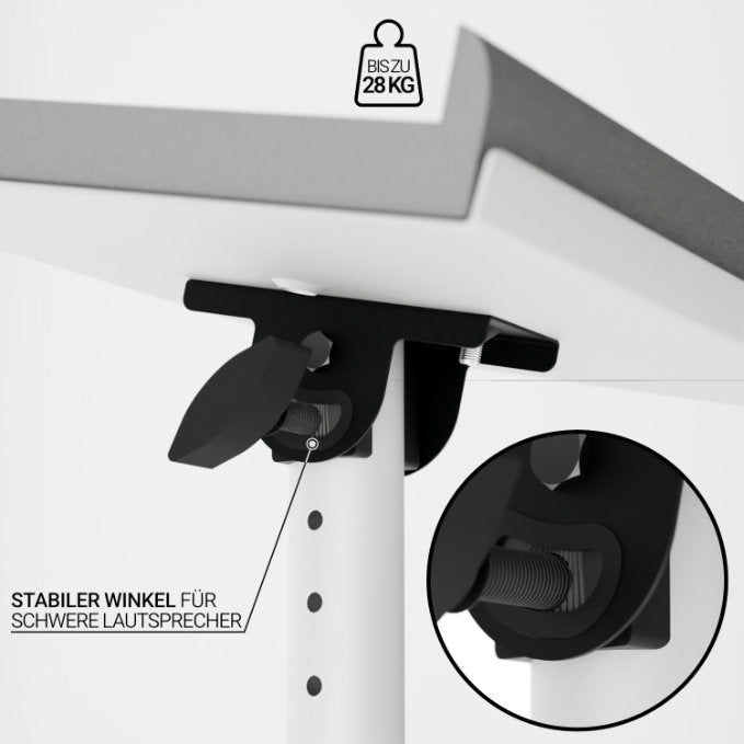 - Vollständiges Set - Zwei Stück höhenverstellbare Boxenständer mit Tischklemme, inklusive Lautsprecher Absorber.