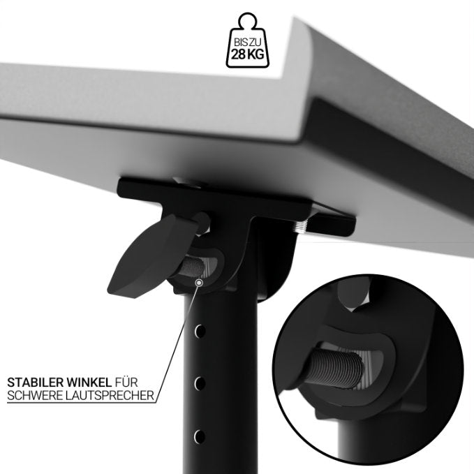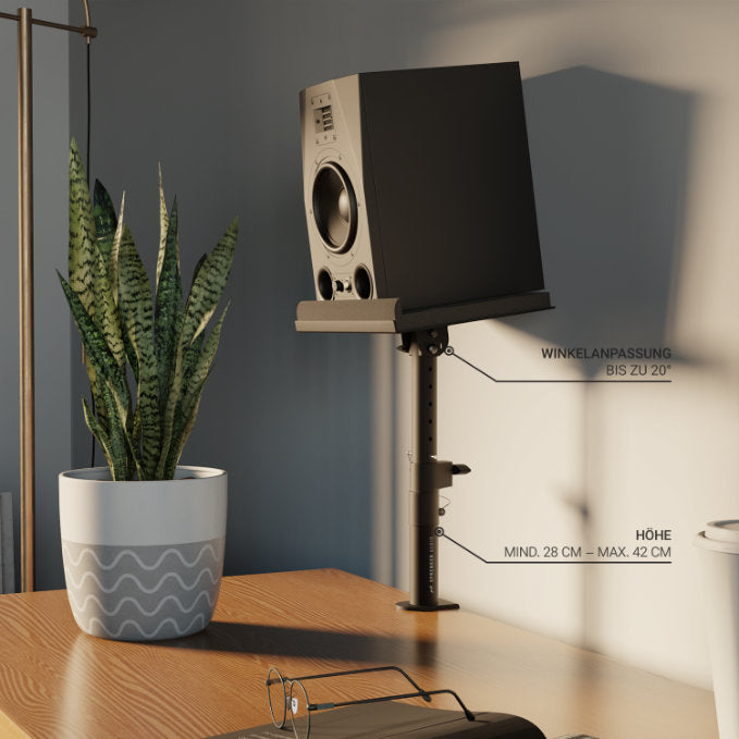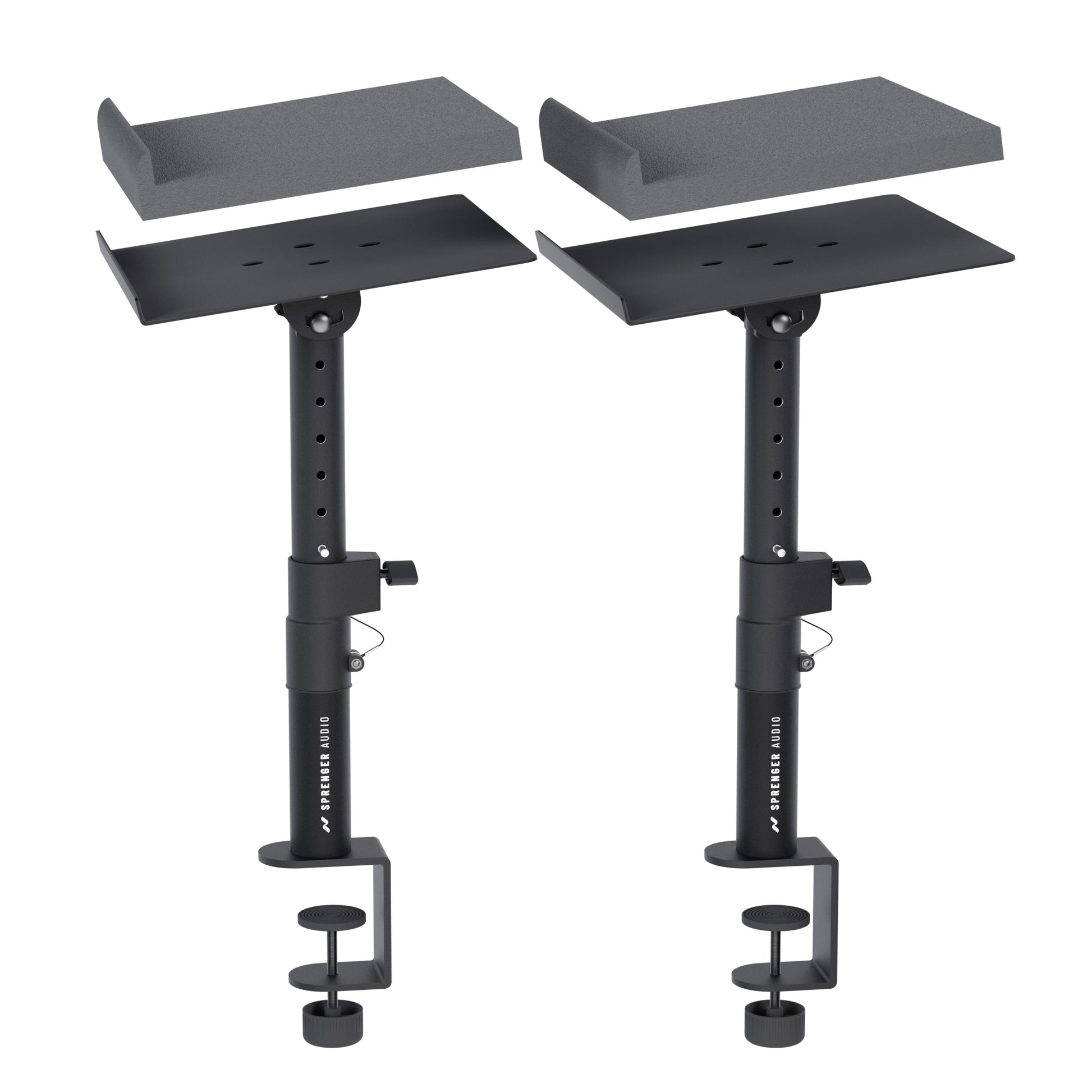 - Vollständiges Set - Zwei Stück höhenverstellbare Boxenständer mit Tischklemme, inklusive Lautsprecher Absorber.